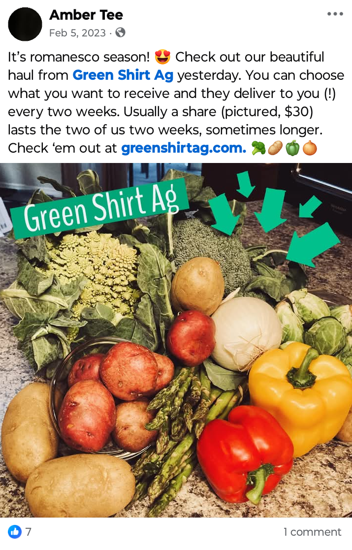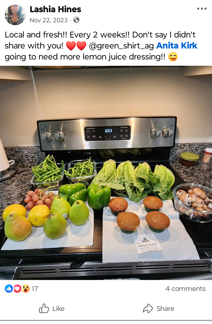 At Green Shirt Ag, we built our delivery service around what matters most to families: fresh food, honest sourcing, convenience, and real value. Our goal isn’t just to bring produce to your door—it’s to make your life easier, healthier, and more enjoyable every week.